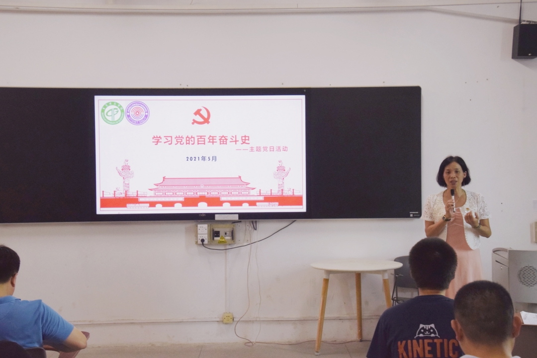 5月20日下午,tyc41183太阳成直属党支部在机电楼312课室开展“学习党的百年奋斗史”的主题党日活动暨第11期入党积极分子培训第三讲。本次党课由党支部书记宋美娴主持,经理陈伟主讲,共有102名师生党员和入党积极分子参加。