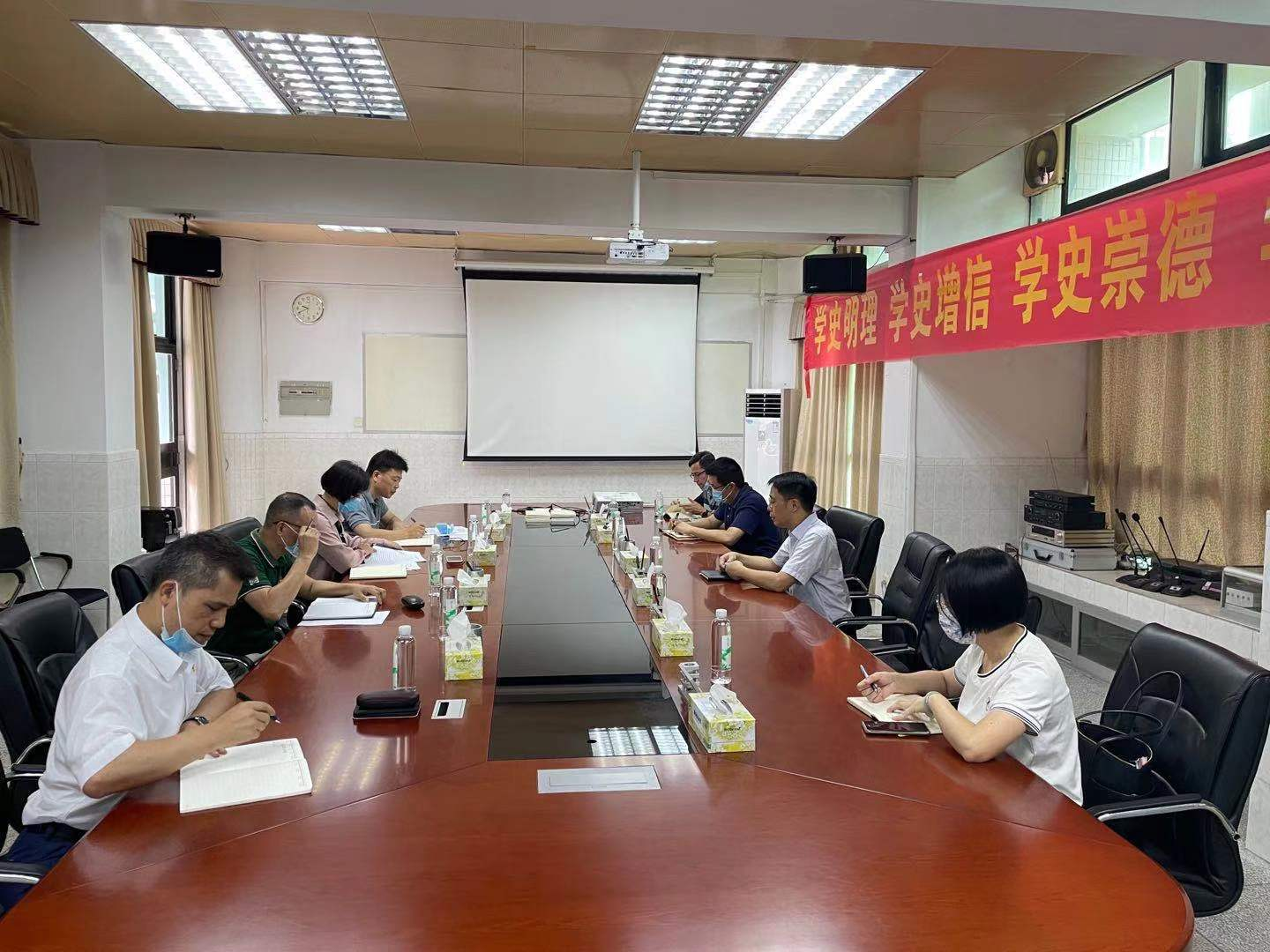 6月3日,公司党委书记成洪波到tyc41183太阳成进行调研,莞城校区管委会主任刘健陪同。成洪波主持会议,tyc41183太阳成经理陈伟、书记宋美娴;法社公司书记杜应发、副书记丘永辉参加会议。
