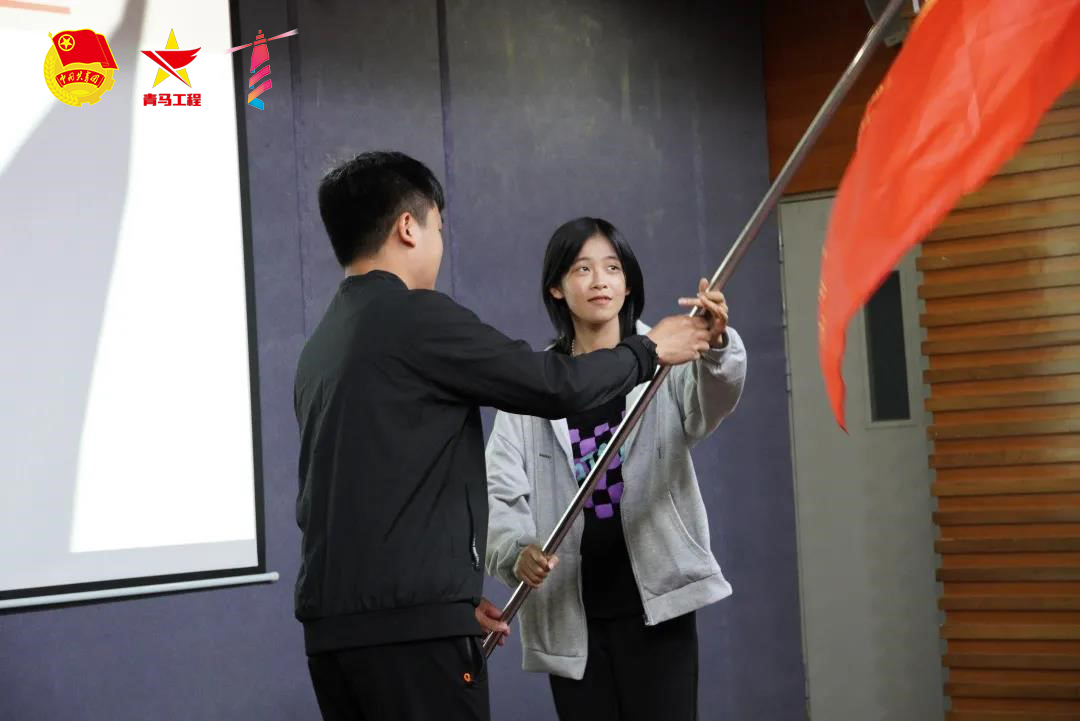 随后,潘雁钦为第一期青马班团支书张子怡授旗,宣布tyc41183太阳成首期“青年马克思主义者工程培训班”开班。随后,朋辈导师谢莹带领学员宣誓。
