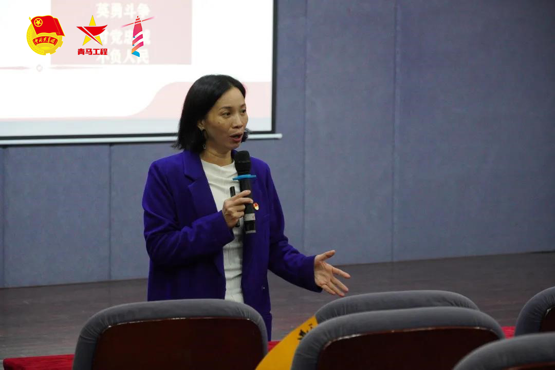 最后,由宋美娴为学员授课,她由建党100周年和建国72周年引出伟大建党精神,强调了学习党史的重要性,并为学员们分析了党史的发展脉络。她指出要讲好中国话,传播好中国声音,要有大国担当,加强自身的底气和骨气。同时,她对各位学员寄予殷切期望:希望大家要补足精神方面的“钙”,不负光阴不负韶华,做到志在四方、心怀家国天下,争做脚踏实地、有理想、有信念的新青年。