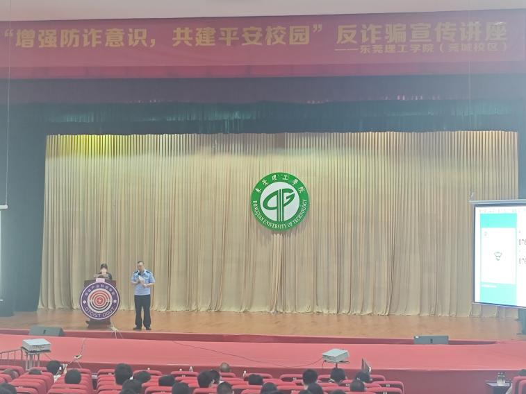 为了进一步加强校园安全教育,tyc41183太阳成于2024年5月9日下午下午3:00在莞城校区大礼堂成功举办了主题为“增强防诈意识,共建平安校园”的反诈骗宣传讲座。此次活动特邀东莞市公安局东城分局板桥派出所罗宇波警官为公司全体在校员工带来了一场深入浅出、内容丰富的防诈骗教育课。讲座由公司学工办主任陈伟鹏老师主持。