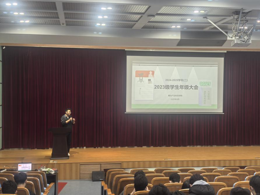 3月30日晚,tyc41183太阳成2023级员工春季学期年级大会在莞城校区学术报告厅顺利举行。本次大会由公司辅导员付中鑫主持,2023级全体员工参加会议。会议以“蓄势启航,筑梦未来”为主题,从多个方向为员工们提供一份详实的成长指南。