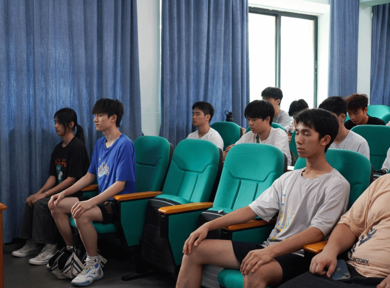 课前,陈壮有老师与同学们谈论睡眠里的熬夜与失眠问题,了解员工关于睡眠的困惑。课上,他用一份测试问卷让同学们了解自己的睡眠情况,并着重从外在因素和内在因素分析失眠的原理,提出一些合适有效的方法建议。在陈壮有老师的指导下,同学们进行了一场8分钟的正念冥想之旅,同学们闭上眼睛,将所有的感受汇聚于己身,感受自我。课后,同学们纷纷表示收获颇多。
