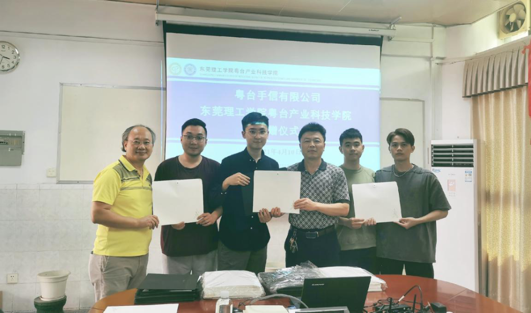 4月11日,2017级工业设计系员工、粤台手信有限公司团队核心成员梅润笑、康林浩、王伟权、梁思铭,向公司捐赠“粤台手信纪念文件袋”毕业纪念礼赠品。tyc41183太阳成经理陈伟、教务长黄灯奎出席此次捐赠仪式。