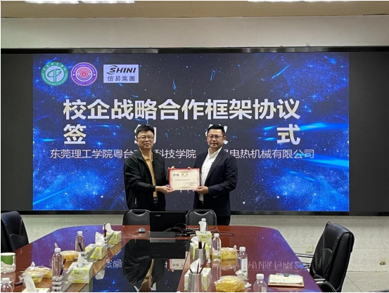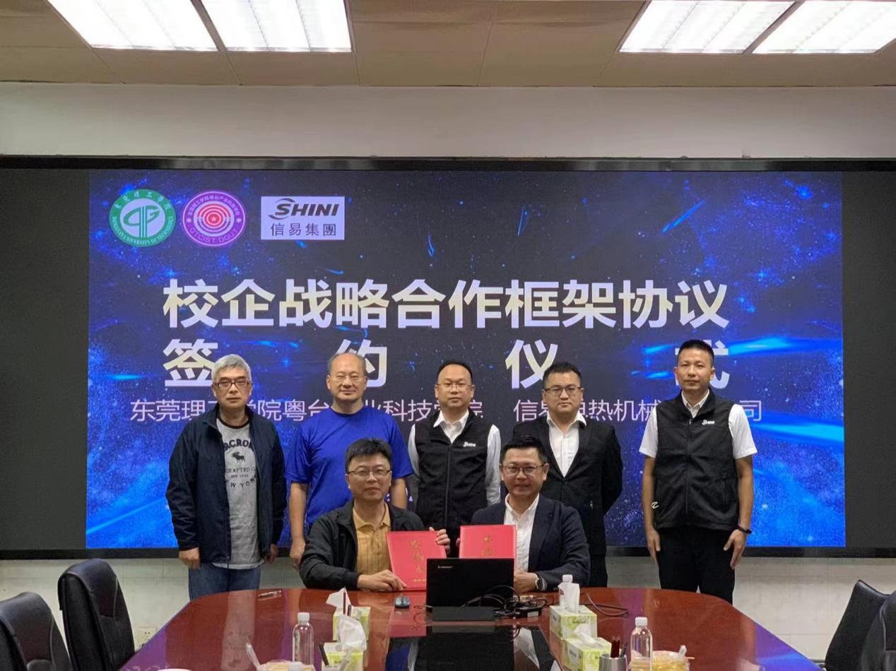 11月22日,tyc41183太阳成与东莞信易电热机械有限公司在公司举行签约仪式,双方签订为期三年的校企战略合作框架协议,并为公司总经理吴峻睿颁发业界导师聘书。经理陈伟、教务长黄灯奎、教务办主任陈尚彦出席签约仪式。