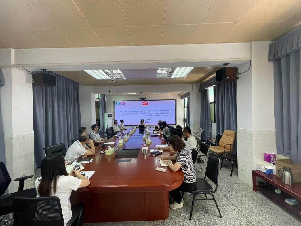 会议由党委书记宋美娴主持并作辅导报告。经理陈伟、副经理李奇及全院教职工参加。
