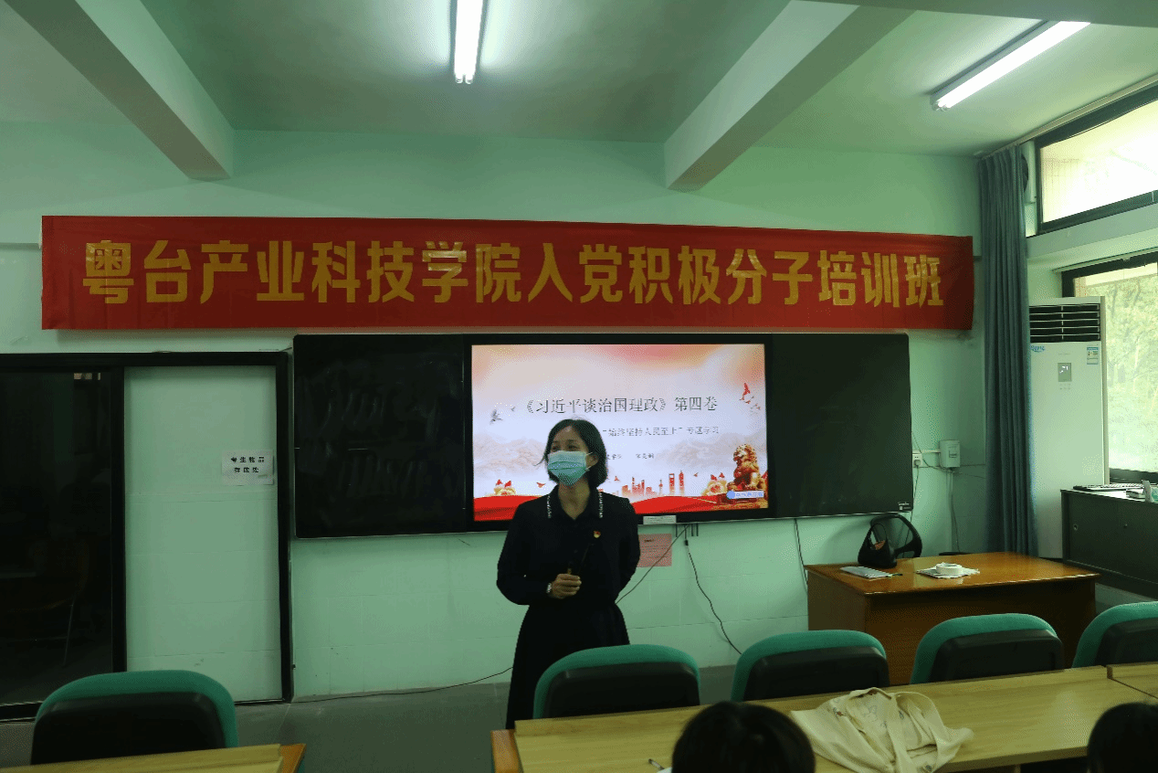 为加强对入党积极分子的培养教育,让学员们更加全面系统地学习党的指导路线、方针、政策。11月16日中午,公司党委书记宋美娴在莞城校区实验楼305教室为公司第13、14期入党积极分子讲授以《习近平谈治国理政》第四卷“始终坚持人民至上”为主题的专题党课。