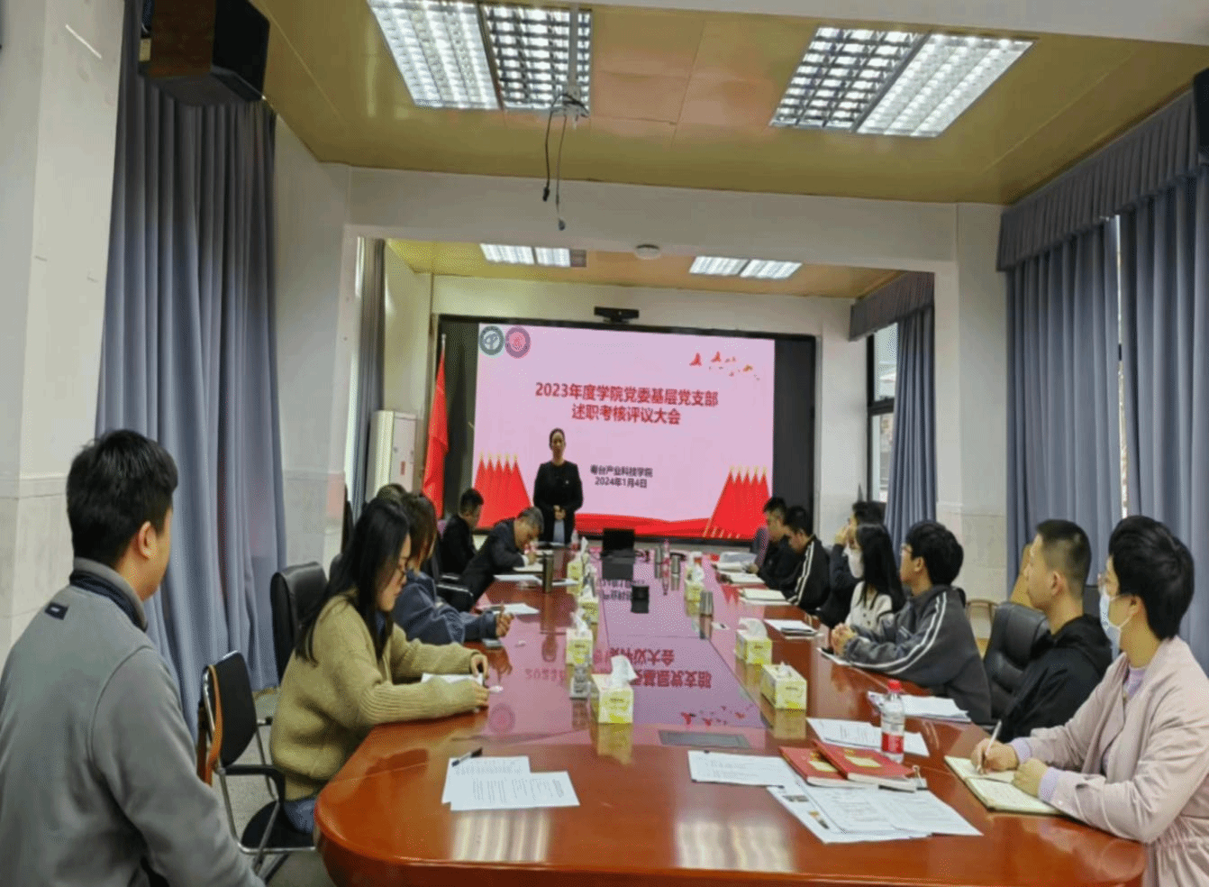 为深入学习贯彻习近平新时代中国特色社会主义思想,不断提升党建引领基层治理效能,根据《中国共产党支部工作条例(试行)》及公司《关于做好 2023 年度基层党组织书记抓基层党建工作述职评议考核的通知》有关规定,2024年1月4日,公司党委在莞城校区实验楼302会议室召开了2023年度基层党支部书记述职考核评议会。公司班子成员、党委委员、各党支部书记、师生党员代表参加了会议,会议由公司党委书记宋美娴主持。