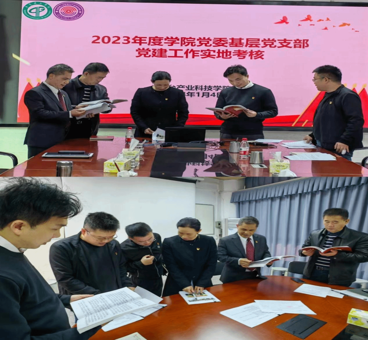 接着公司党委委员通过现场查阅各支部党建工作相关材料,认真对照评分标准一一对各支部的党建工作提交的材料进行了现场核查并完成评分。