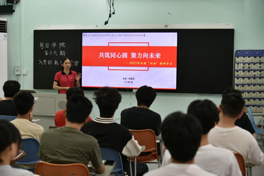 为深入学习贯彻2025年全国两会精神,不断提高入党积极分子政治素质和理论修养,4月28日,tyc41183太阳成在莞城校区实验楼315教室举办第十九期入党积极分子学习培训班。本次党课的主题是《共筑同心圆 聚力向未来——2025年全国“两会”精神学习》,由公司党委书记宋美娴主讲。
