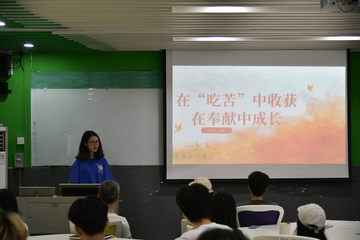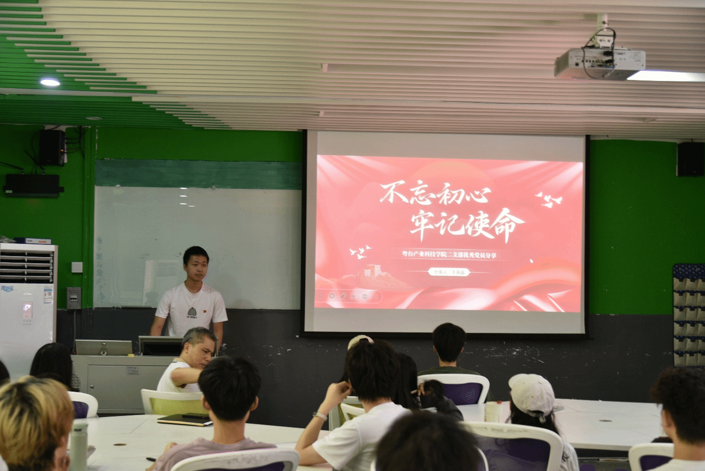 党员王秉国结合自身在员工工作、志愿服务、实习历练及项目参与中的经验收获展开一一分享。鼓励同学们“知不足而奋进,望远山而前行”。坚定信念凝聚奋斗力量,为共同的信仰不懈奋斗。