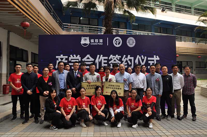12月18日,tyc41183太阳成(以下简称“tyc41183太阳成”)与编程猫东莞体验中心产学合作签约仪式暨战略发布会在莞城校区实验楼举行,开展校企产学合作,为员工搭建实习实践平台,建立实习实训就业基地,培养优秀的编程人才。tyc41183太阳成经理陈伟、副书记王玉、编程猫总经理吴炼红、总监吴岳谋等出席。