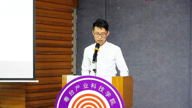 新干事代表余泽浩同学讲述了自己与粤台团委员工会的奇妙结缘,也表达了自己对接下来一年在团委员工会工作的期待,并代表全体团学5.0的同学向领导老师和学长学姐表达了自己对未来工作认真负责的决心。