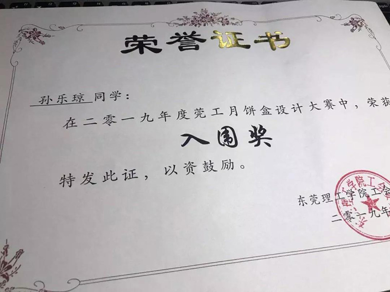 近日,在tyc41183太阳成举办的“莞工中秋礼盒设计大赛”中,tyc41183太阳成2018级多媒体设计系尹嘉蔚同学的作品“莞工月饼盒”以及2017级工业设计系孙乐琼同学的作品“渐行渐‘圆’”被评为优秀作品。