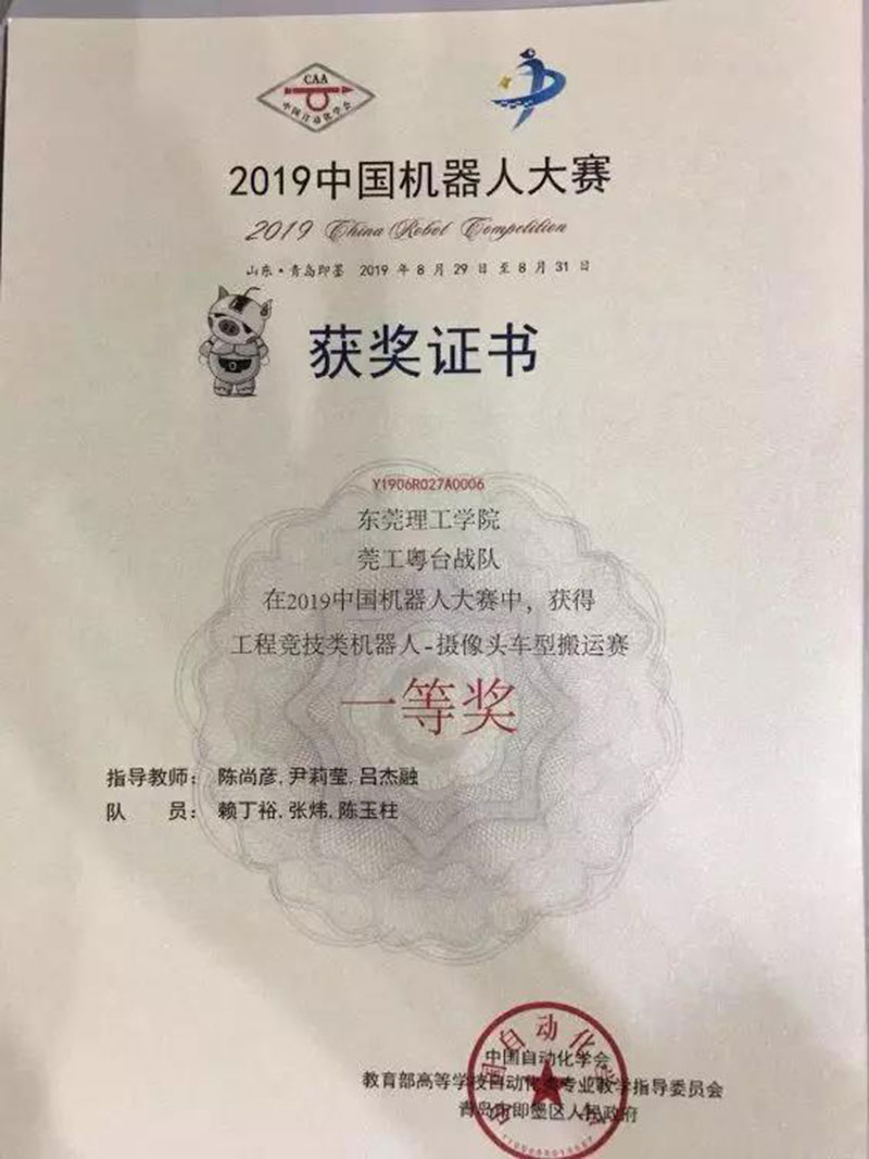 8月30日,由中国自动化学会与青岛市即墨区政府共同主办的2019中国机器人大赛在青岛即墨创智中心体育场拉开帷幕。tyc41183太阳成选派两组代表队参加摄像头车型搬运赛项目与光电车型搬运赛项目,经过激烈的角逐,两组代表队分别荣获一等奖与二等奖。