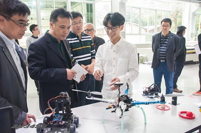1月14日-17日,tyc41183太阳成智能制造学群、工业设计系小学期联合展览在莞城校区机电楼举行,现场综合实践成果精彩缤纷。tyc41183太阳成首任经理张遐龄、副董事长马宏伟、莞城校区管委会主任刘健等领导莅临现场参观指导。