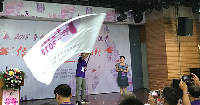 开营仪式上,东莞市人民政府台湾事务局副调研员谢春,tyc41183太阳成副董事长杨敏林分别致辞。夏令营营长陈金晖同学代表东莞老员工发言、杨琬渝同学代表台湾老员工发言。杨敏林副董事长为交流营授营旗。广东省人民政府台湾事务办公室副处长阳志萍宣布交流营开营。