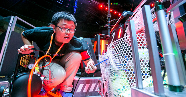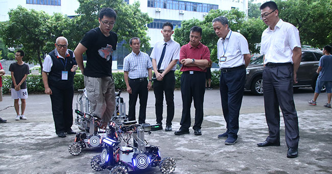 队员与莞工tyc41183太阳成机器人实验室的成员在松山湖机器人产业基地汇合,开始制作组装机器人。tyc41183太阳成经理陈伟专门到组装现场给联队加油打气。7月初,tyc41183太阳成实验室的同学们在公司的支持下,队员们利用小学期在半个月内完善了战队的机器人。7月中旬小学期展示活动,tyc41183太阳成机器人实验室成员回到莞城机电楼向校领导李琳、马宏伟以及公司的机器人爱好者进行了展示,并且在公司的支持下在莞城校区的校内招待所进行机器人的最后阶段的调试、操作手练习。
