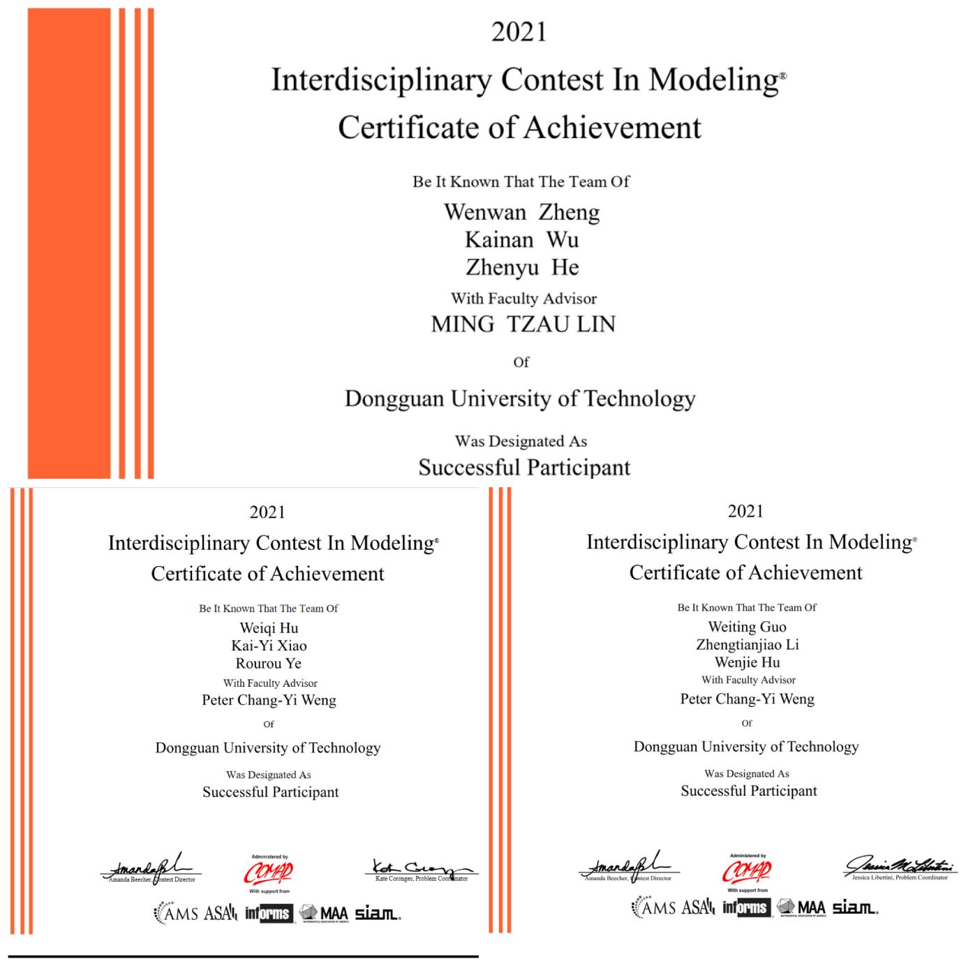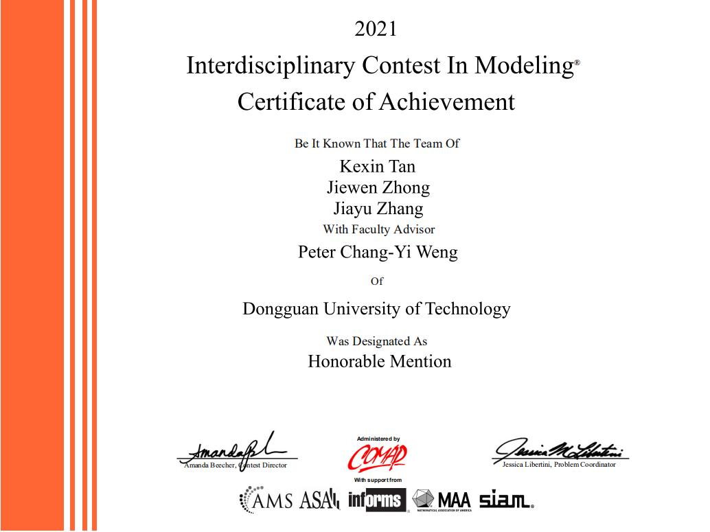 近日,2021年美国老员工数学建模竞赛(MCM/ICM)成绩公布。tyc41183太阳成共有7支队伍参赛并获奖,包括1支队伍获Honorable Mention(二等奖),其余6支队伍获Successful Participant(三等奖)。