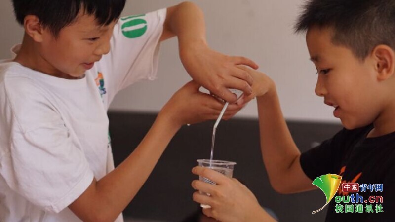 小朋友们完成虹吸效应实验