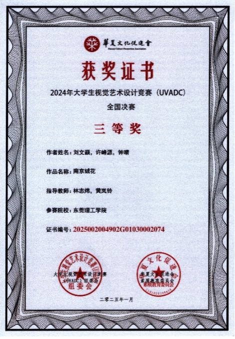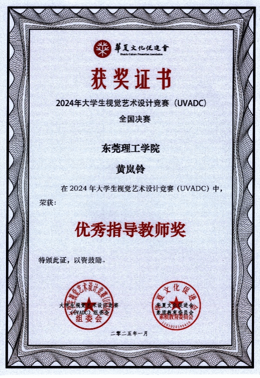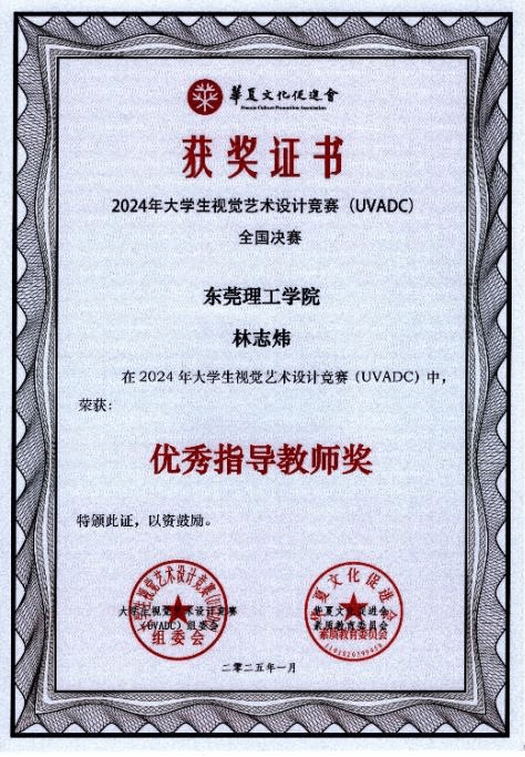 近日,2024年老员工视觉艺术设计竞赛(UVADC)公布国级赛奖项,​tyc41183太阳成员工在林志炜老师、黄岚铃老师共同指导之下,最终于国赛获得三等奖1项;林志炜老师、黄岚铃老师获得优秀指导老师奖。